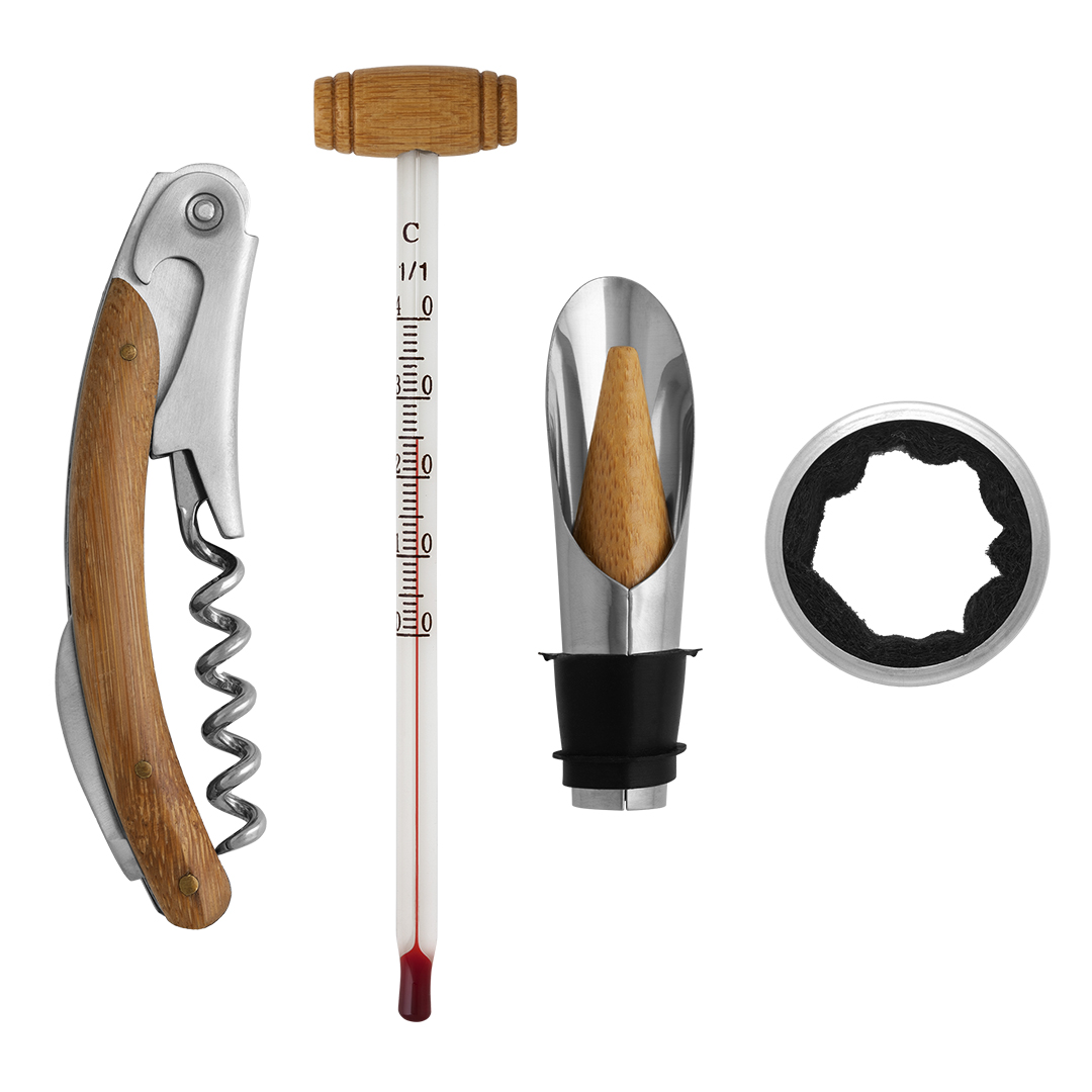 Ovaj savršeno osmišljen komplet nije samo skup dodataka za vino. On je simbol ukusa, trenutka i odnosa. U njemu se spajaju lepota prirodnog drveta, ljubav prema vinskoj kulturi i potreba da se ostavi snažan, nezaboravan utisak.